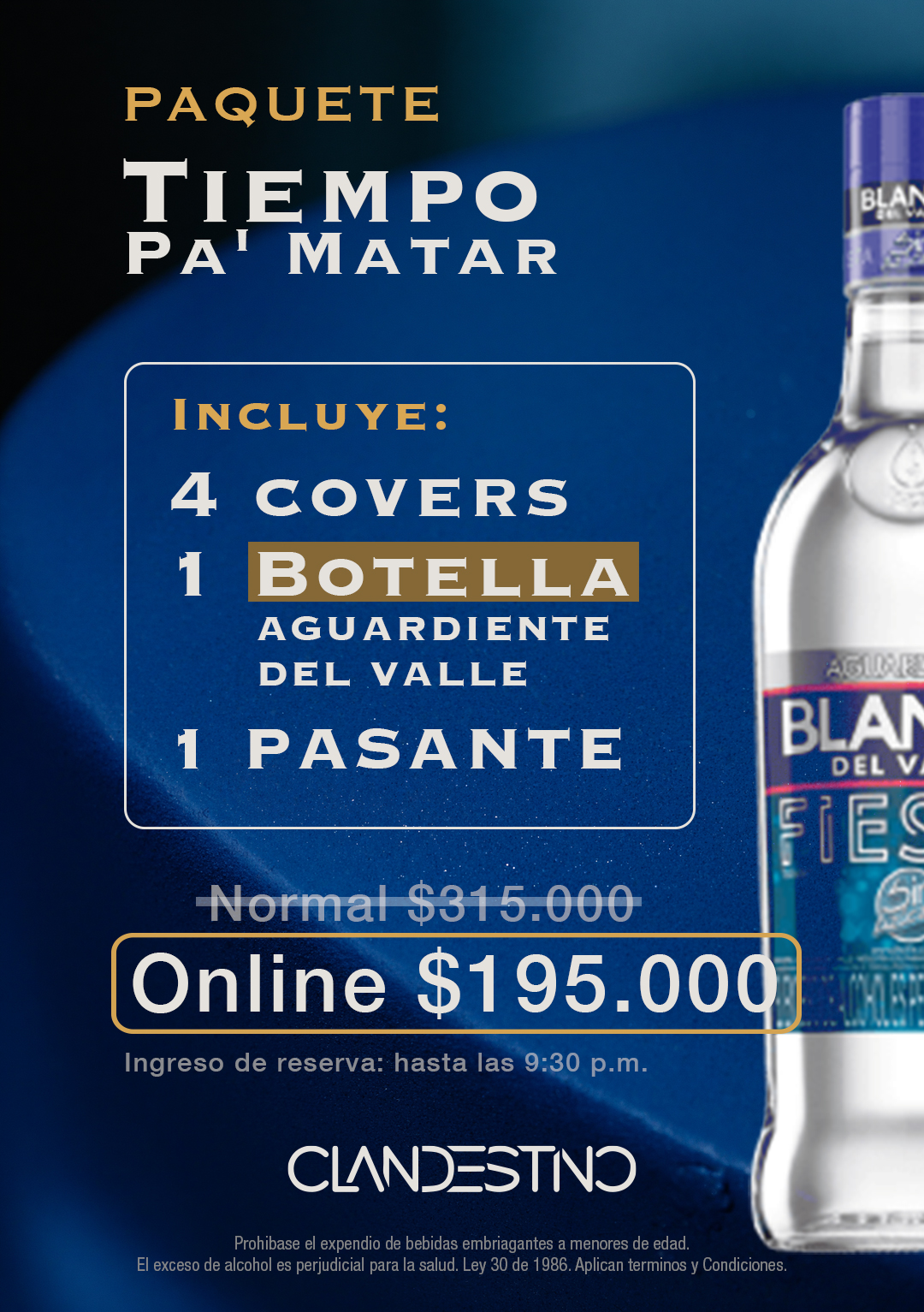 Cantidad de paquetes: 1 Paquete Tiempo pa matar (+$ 195.000) 2 Paquetes Tiempo pa matar (+$ 390.000) 3 Paquetes Paquete Tiempo pa matar (+$ 585.000)